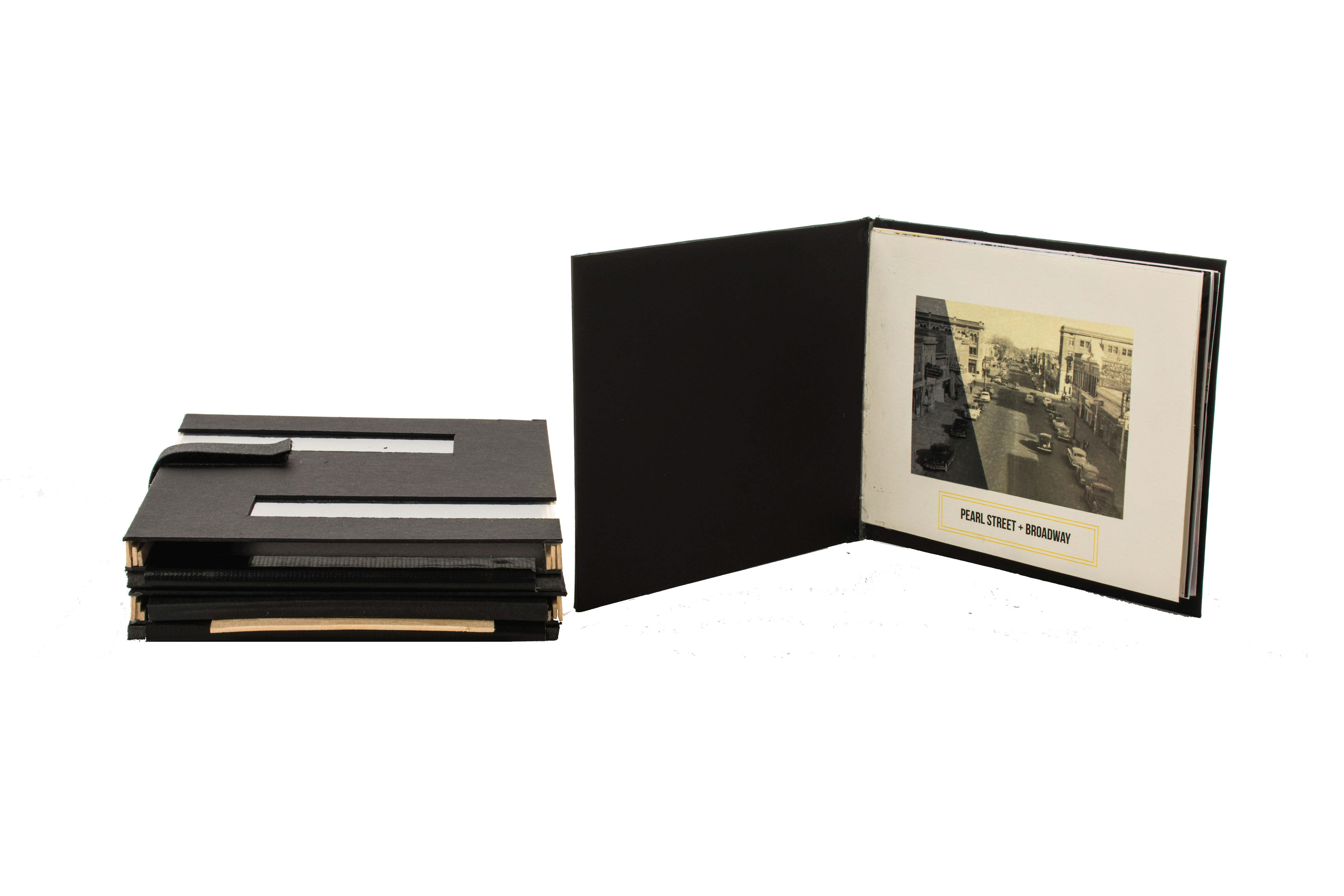The "Booklet Case" is a product design project focused on providing a streamlined storage and display container for project booklets and photo albums.